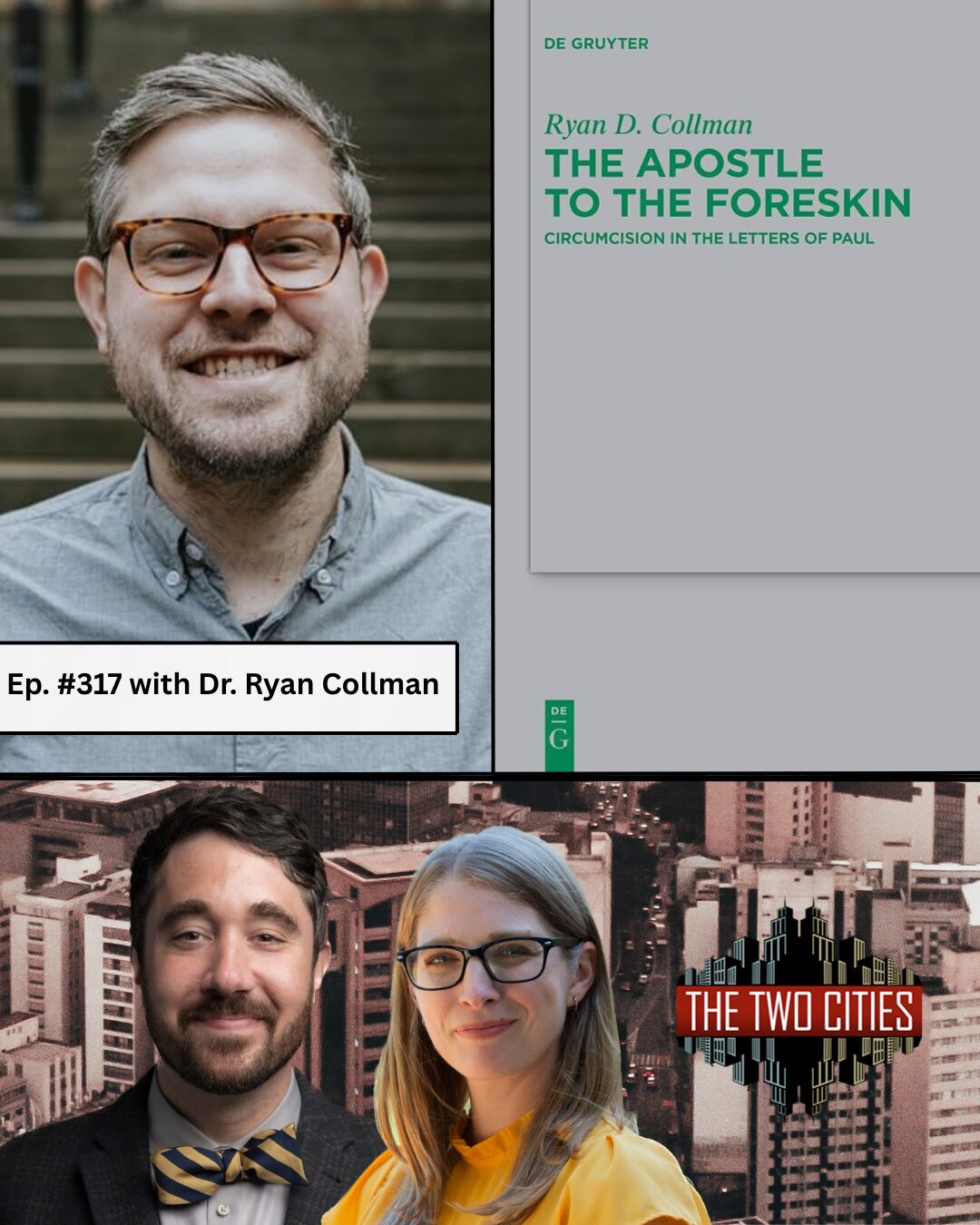 In this episode, we’re joined by Dr. Ryan Collman, who is Associate Supervisor at Westcott House, Cambridge, and tutor in New Testament at the University of London, as well as the author of The Apostle to the Foreskin: Circumcision in the Letters of Paul (De Gruyter), which won the Lautenschlaeger Award in 2023. In our conversation, we talk about circumcision in the letters of Paul with reference to ancient practices and perspectives, as well as modern pseudoscientific views about the contemporary practice in America. Team members on the episode from The Two Cities include: Dr. John Anthony Dunne and Rev. Dr. Madison Pierce.